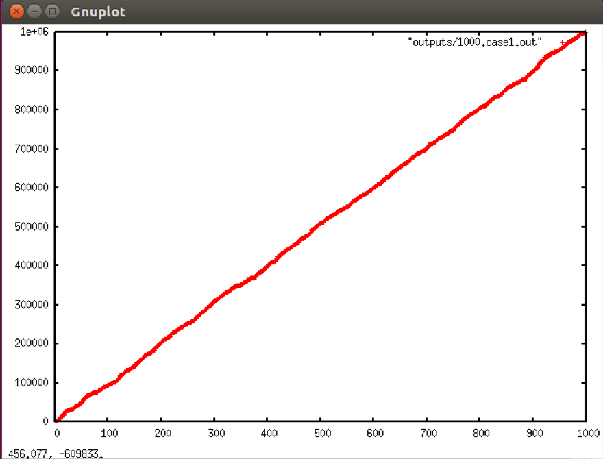 gnuplot> plot “outputs/1000.case1.out”